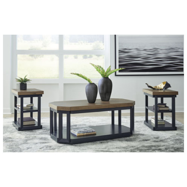 Landocken Brown/Blue 3pk Table set w/casters