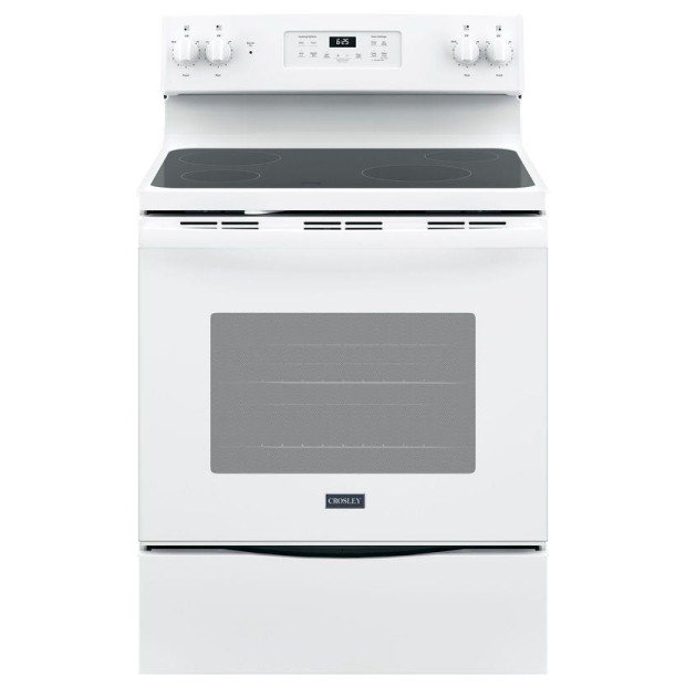 Crosley white 30" freestanding smooth top range with 4 burners and self-clean oven