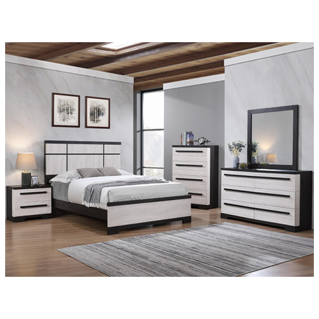 Remington blk/wht Queen Bed, Dr, Mr, Ns