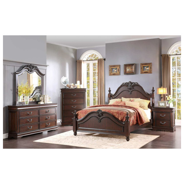Cherry Queen bed,dresser,mirror,nightstand B6580