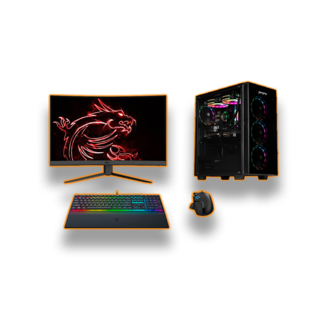 Gaming desktop featuring Ryzen 5, 16gb ram, Vega 7 graphics, 1TB SSD, 32" Curved LED monitor